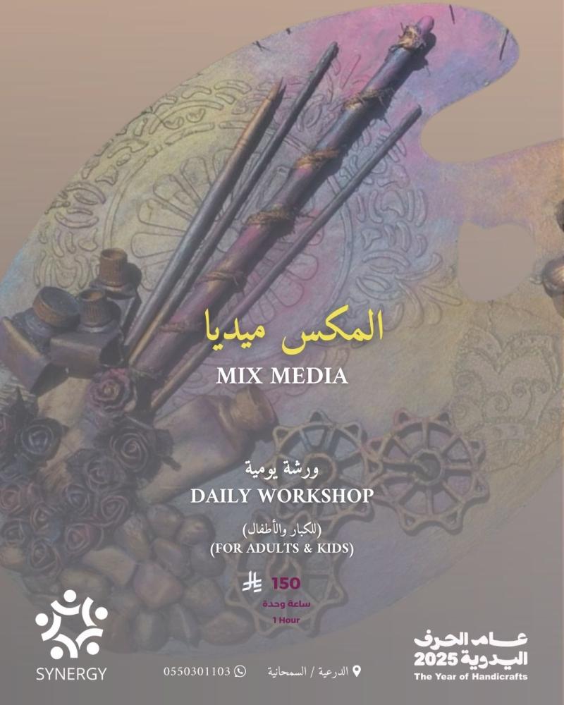 Join the Mixed Media Workshop and enjoy a unique artistic experience that blends colors, materials, and textures to create vibrant paintings and free artistic expression!